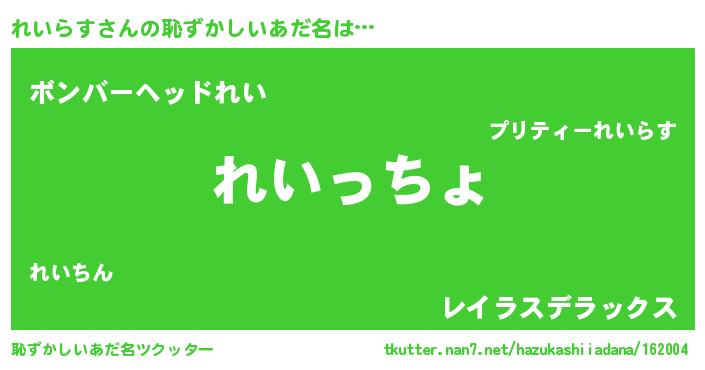 | ヘコむあだ名 | 『レバニラ』『れいっふぃ~』 |