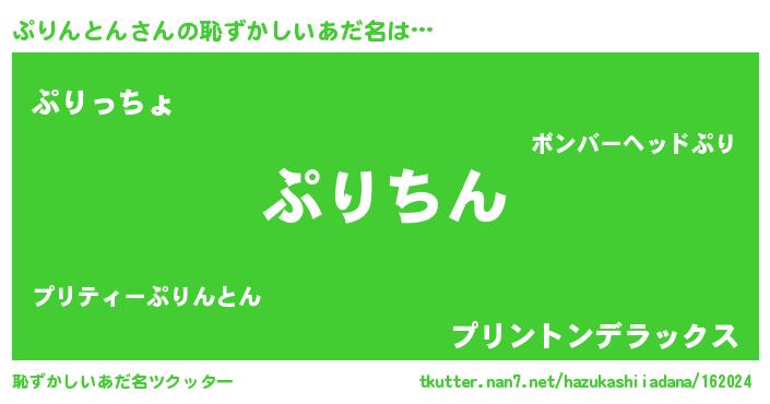 | 男性向けラノベタイトル風あだ名 | 『ぷりんとんという概念が存在しない退屈な世界 』 |