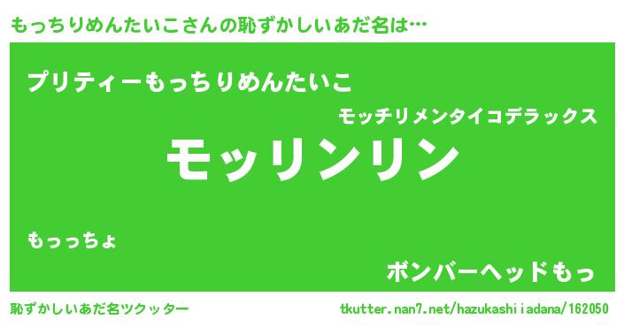 | 意味不明あだ名 | 『とにかく怪しいもっちりめんたいこ』 |