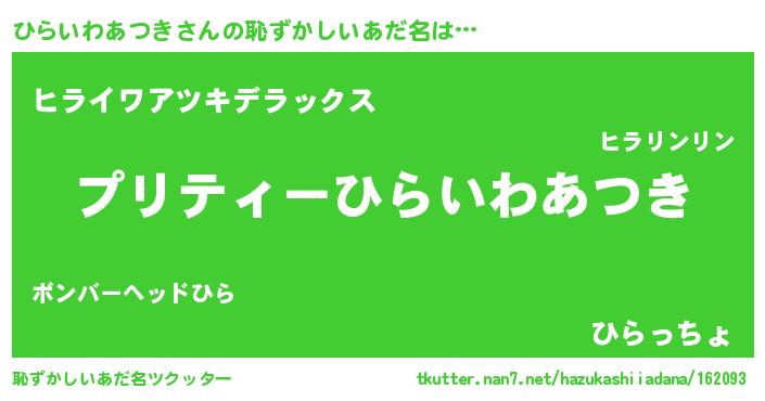 | ヒーロー風カッコイイあだ名 | 『スーパーヒライワアツキ』 |