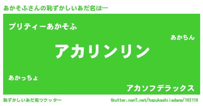| 男性向けラノベタイトル風あだ名 | 『転生したらあかそふだった件』 |