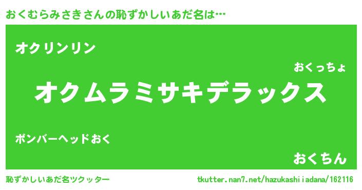 | ヘコむあだ名 | 『おくを』『おくむらみさき(笑)』 |