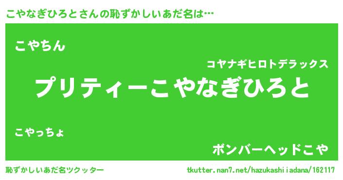 | 男性向けラノベタイトル風あだ名 | 『こやなぎひろとの憂鬱』 |