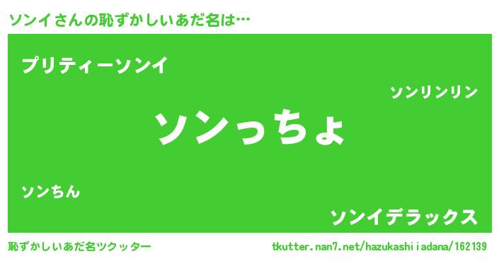 | 男性向けラノベタイトル風あだ名 | 『ソンイスレイヤー』『魔弾の王とソンイ』 |