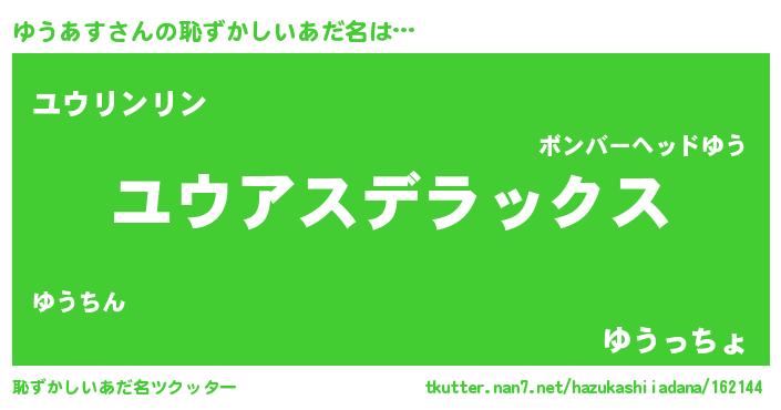 | 意味不明あだ名 | 『自称ゆうあす』『もやし科ゆうあす属』 |