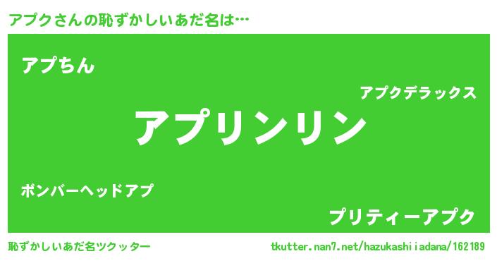 | 意味不明あだ名 | 『とにかく怪しいアプク』『自称アプク』 |