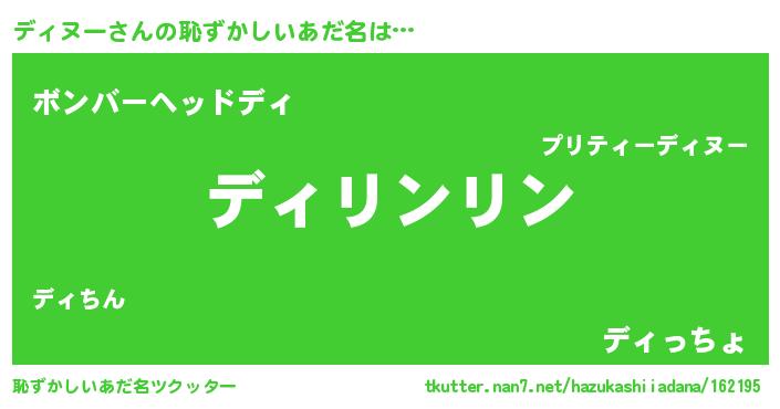 | 男性向けラノベタイトル風あだ名 | 『ダンジョンにディヌーを求めるのは間違っているだろうか』 |