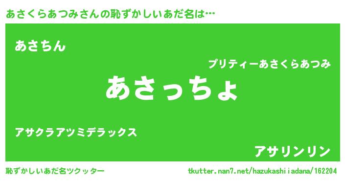 | 男性向けラノベタイトル風あだ名 | 『転生したらあさくらあつみだった件』 |