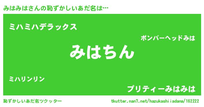 | 意味不明あだ名 | 『永久保存みはみは』『自称みはみは』 |