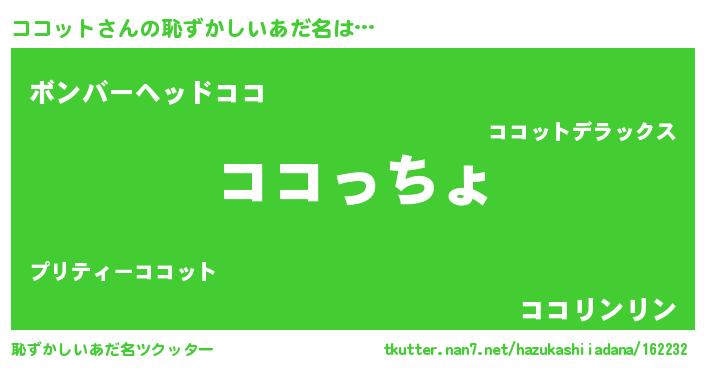 | ヘコむあだ名 | 『なまこ酢』『ココっちょ』 |