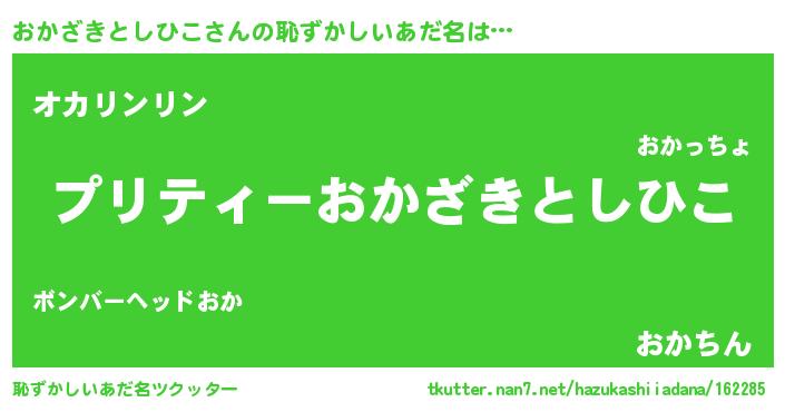 | 男性向けラノベタイトル風あだ名 | 『おかざきとしひこの憂鬱』 |