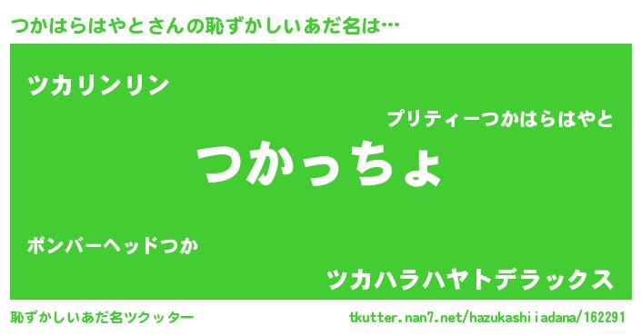 | 意味不明あだ名 | 『住所不定無職つかはらはやと(93歳)』 |