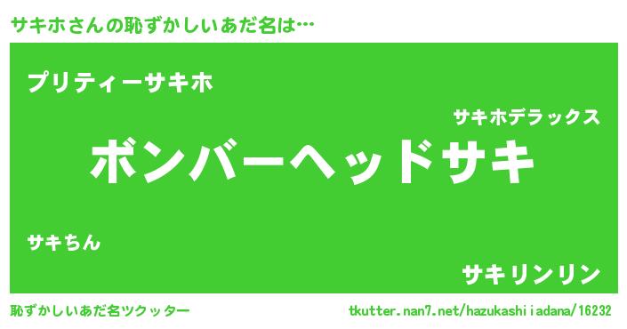 | ヒーロー風カッコイイあだ名 | 『慈愛の使者サキホ』『スーパーサキホ』 |