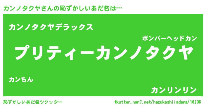 | ヒーロー風カッコイイあだ名 | 『スーパーカンノタクヤ』『仮面カンダー』 |
