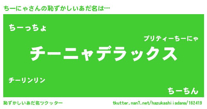 | ヒーロー風カッコイイあだ名 | 『最強戦士チーニャ』『仮面チーダー』 |