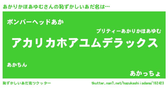 | 意味不明あだ名 | 『自称あかりかほあゆむ』 |
