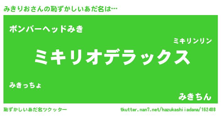 | 意味不明あだ名 | 『住所不定無職みきりお(13歳)』 |