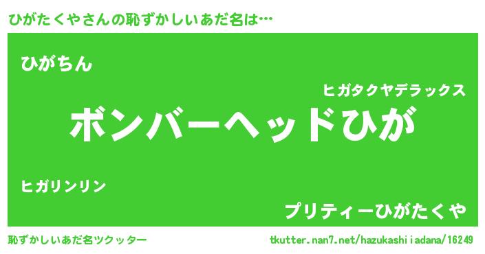 | ヘコむあだ名 | 『ひがたくや(爆)』『ひがにー』 |