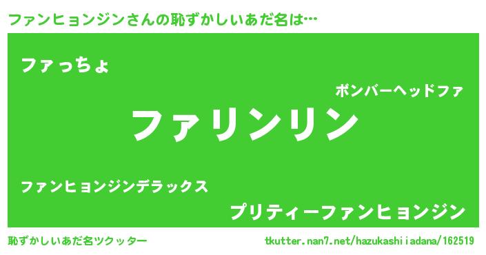 | ポケモン風あだ名 | 『ヒファンヒョンジン』『ファゴンZ』 |