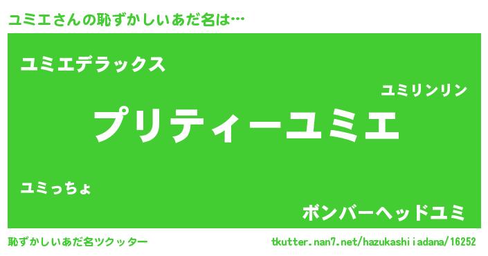 | 意味不明あだ名 | 『ペロリンユミエ』『自称ユミエ』 |