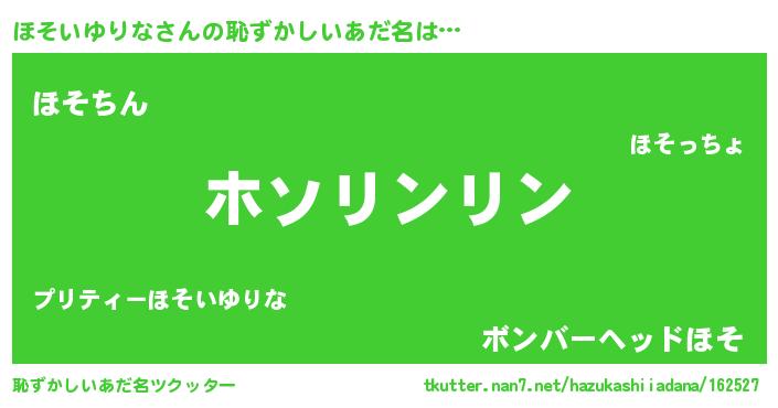 | ヘコむあだ名 | 『ほそっ子』『ほそいゆりな(小並感)』 |