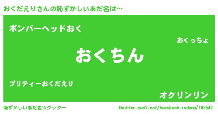 | ヘコむあだ名 | 『おくだえり(笑)』『おく太郎』 |