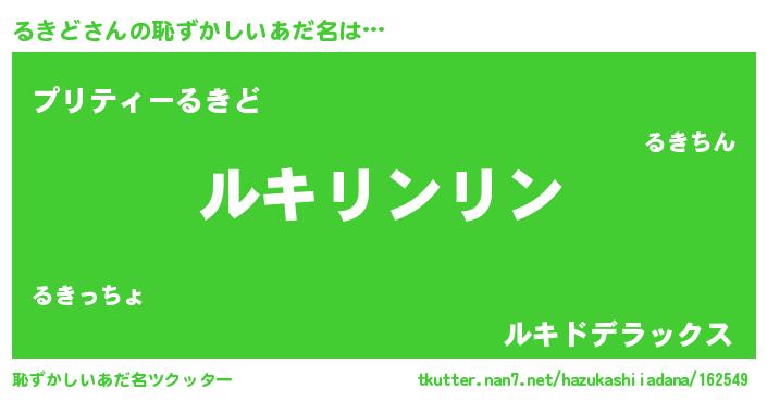 | 女子向けラノベタイトル風あだ名 | 『るきどは平凡を望む』『闇のるきど』 |