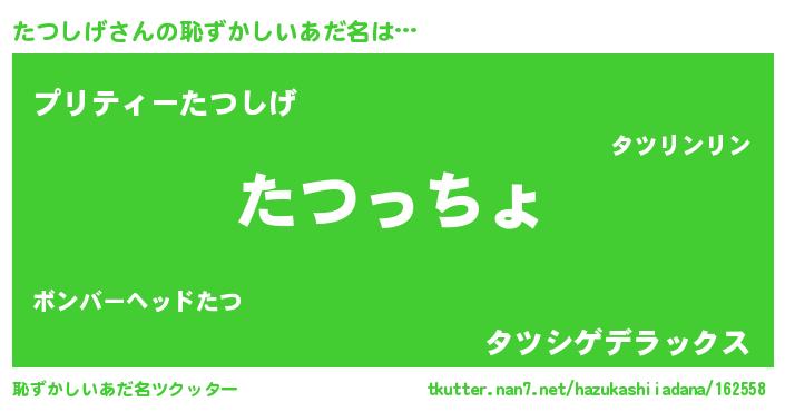 | 意味不明あだ名 | 『住所不定無職たつしげ(77歳)』 |