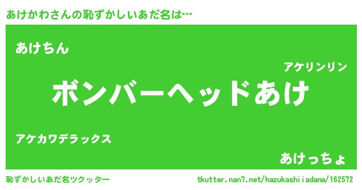 | 男性向けラノベタイトル風あだ名 | 『ノーゲーム・ノーアケカワ』 |