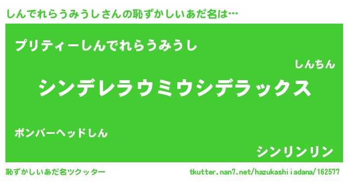 | 意味不明あだ名 | 『住所不定無職しんでれらうみうし(4歳)』 |
