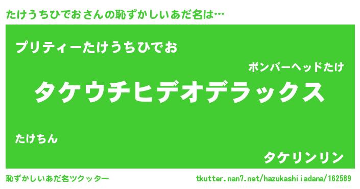 | ヘコむあだ名 | 『たけにゅー』『たけを』『牛乳』 |
