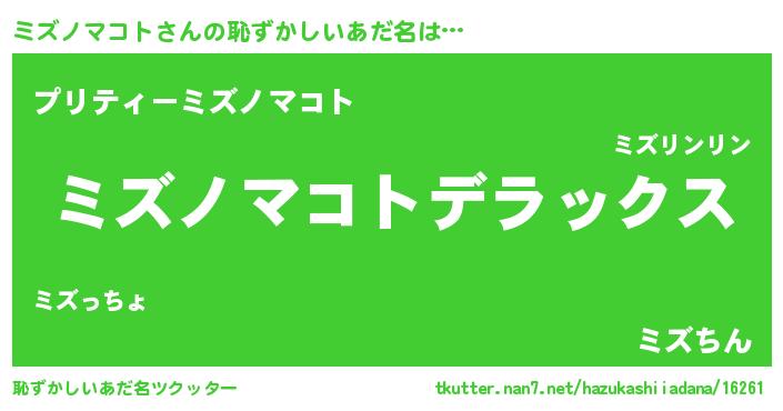 | ヘコむあだ名 | 『ミズにー』『ミズノマコト(苦笑)』 |