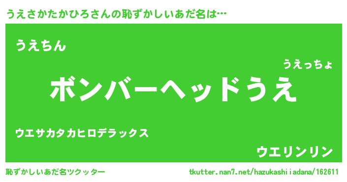 | ヘコむあだ名 | 『うえさかたかひろ(笑)』『うえっ子』 |