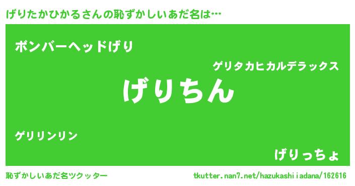 | 意味不明あだ名 | 『永久保存げりたかひかる』 |