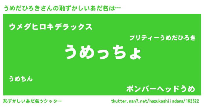 | ヒーロー風カッコイイあだ名 | 『仮面ウメダー』『究極戦士ウメダヒロキ』 |