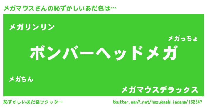 | ヒーロー風カッコイイあだ名 | 『仮面メガダー』『慈愛の使者メガマウス』 |