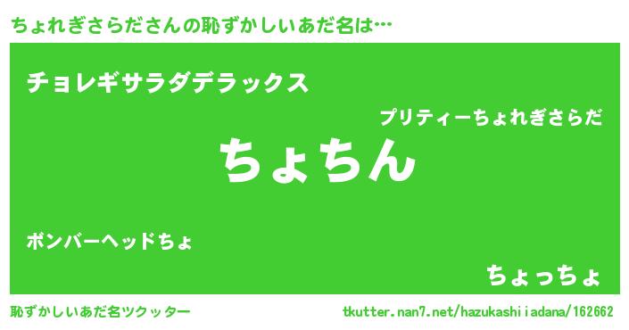 | 意味不明あだ名 | 『永久保存ちょれぎさらだ』 |