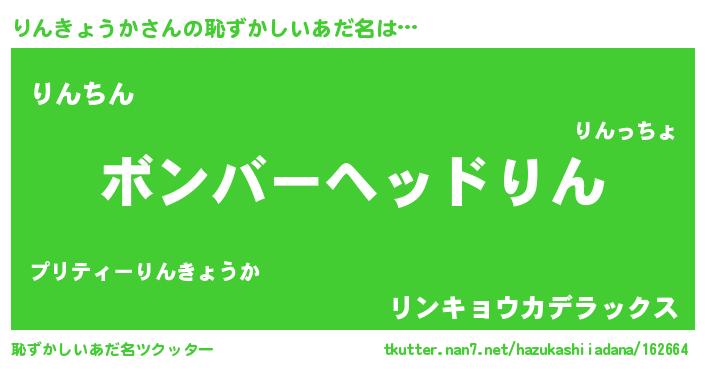 | ヘコむあだ名 | 『りんきょうか(爆)』『豆乳』 |