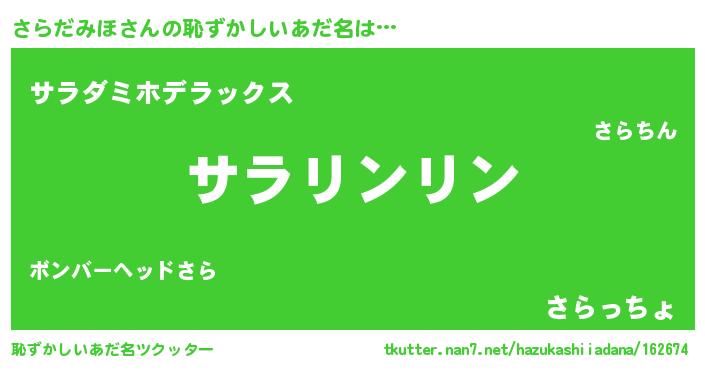 | 肩書あだ名 | 『さらだみほ塾長』『さらだみほ中佐』 |