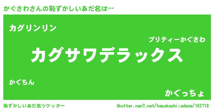 | 意味不明あだ名 | 『自称かぐさわ』『かぐさわフォーエバー』 |