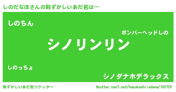 | 意味不明あだ名 | 『とにかく怪しいしのだなほ』 |