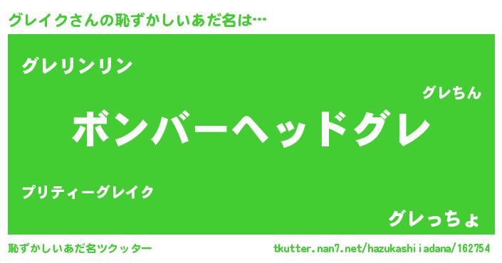 | ヒーロー風カッコイイあだ名 | 『慈愛の使者グレイク』『暗黒騎士グレ』 |