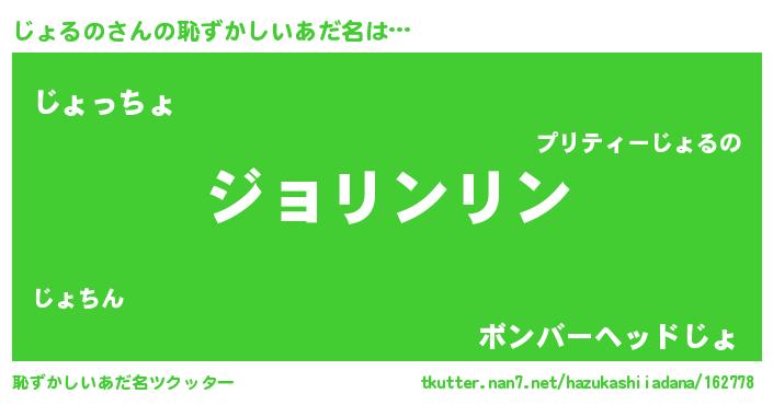 | 意味不明あだ名 | 『住所不定無職じょるの(5歳)』 |