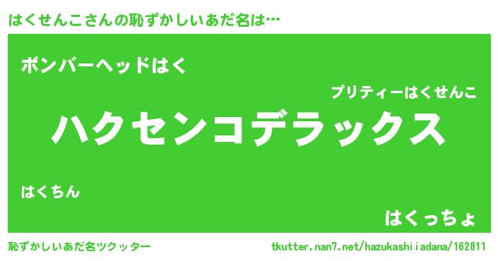 | ヒーロー風カッコイイあだ名 | 『最強戦士ハクセンコ』『仮面ハクダー』 |