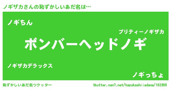 | ヘコむあだ名 | 『ノギザカ(笑)』『レバニラ』 |