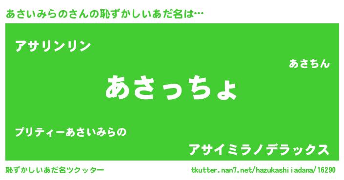 | 男性向けラノベタイトル風あだ名 | 『転生したらあさいみらのだった件』 |