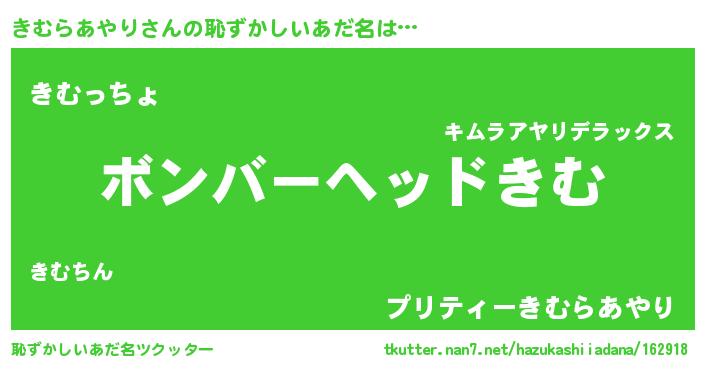 | ヒーロー風カッコイイあだ名 | 『仮面キムダー』『スーパーキムラアヤリ』 |
