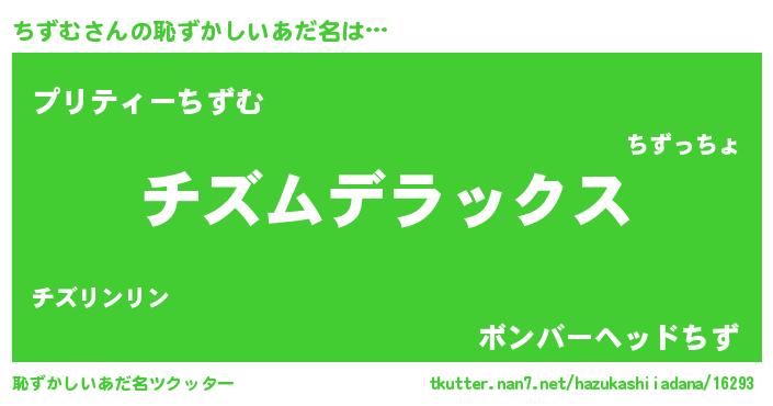 | 男性向けラノベタイトル風あだ名 | 『この素晴らしい世界にちずむを!』 |