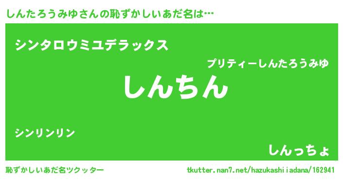 | 意味不明あだ名 | 『永久保存しんたろうみゆ』 |