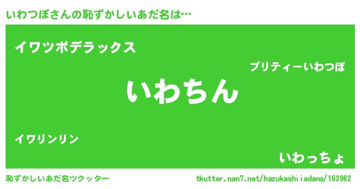 | 男性向けラノベタイトル風あだ名 | 『この素晴らしい世界にいわつぼを!』 |